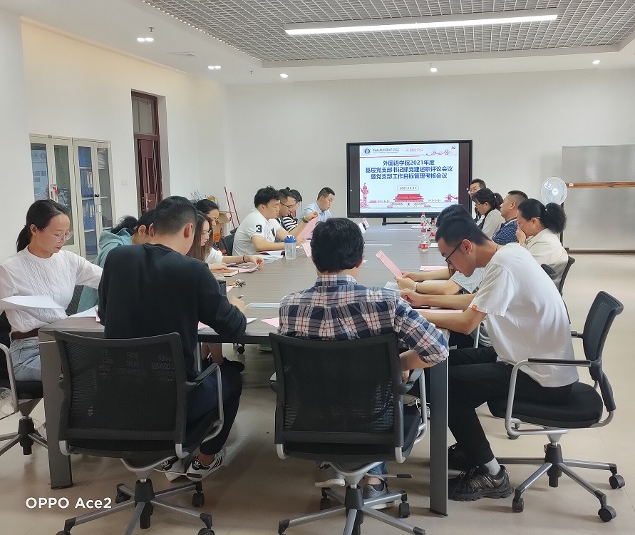 2021年12月31日下午15:30,yl7703永利党委在人文楼312会议室召开2021年度基层党支部书记抓党建述职评议考核暨党支部工作目标管理考核会议。大会由学院党委副书记李足同志主持,出席本次会议的还有学院党委委员、副院长张国臣同志、副院长王颖、学院实验中心主任吴叔尉、5位参加述职的党支部书记以及师生党员代表10人,师生群众代表4人。