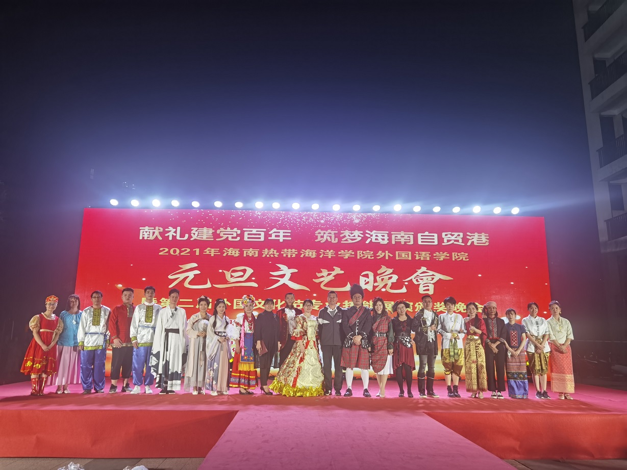 为了大力弘扬伟大建党精神,践行十九届六中全会精神,奋力谱写海南全面深化改革开放和海南自由贸易港建设精彩篇章。同时,为了夯实专业技能,凝聚师生力量,为海南自贸港建设贡献一份力量。12月5日晚上19∶30,yl7703永利在体育馆前广场成功举办了“献礼建党百年,筑梦海南自贸港”元旦文艺晚会暨第二届外国文化节专业技能展演颁奖晚会。本次晚会由yl7703永利主办,英语专业、泰语专业、俄语专业、公共英语教学部承办,yl7703永利团委、学生会、青年志愿者协会协办。学院领导及全体师生参加晚会。
