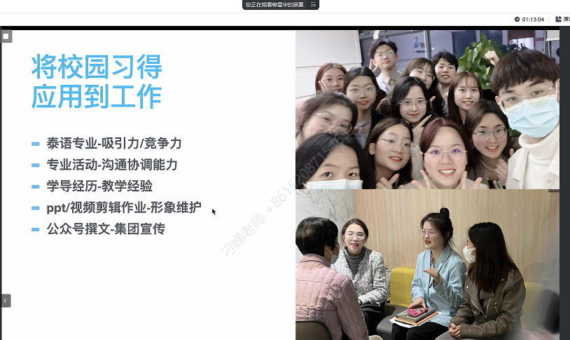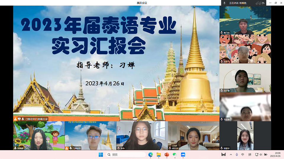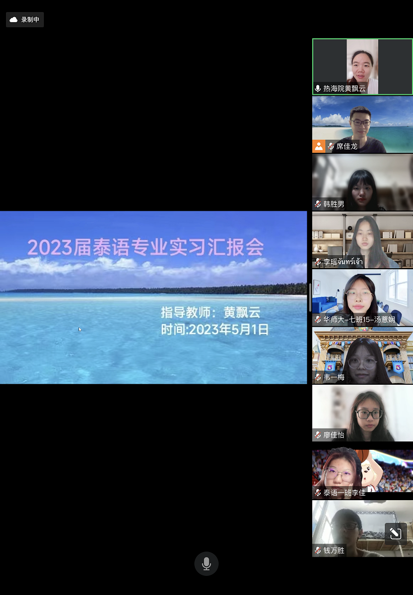 实习结束后,泰语专业于5月1—2日进行线上分组毕业实习总结汇报会,同学们通过PPT主要围绕实习考勤、实习单位和岗位、实习内容、突出表现以及实习心得体会等方面进行汇报。