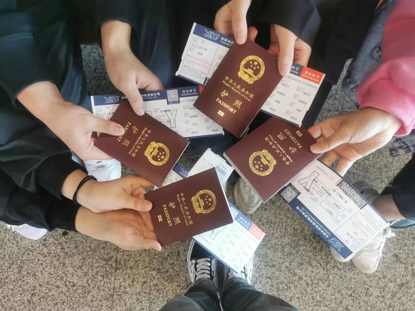 第一批为10月30日之前获得签证的5名同学,他们是2020级泰语专业的李旭东、刘雨菡、袁佳怡、何燕露以及符静怡,临行前大家都仔细学习了在外学习生活应该注意的各个事项并谨记在心。于11月2日下午3时(北京时间)自昆明长水国际机场出发,并于下午4时(曼谷时间)许抵达泰国曼谷素万那普机场。