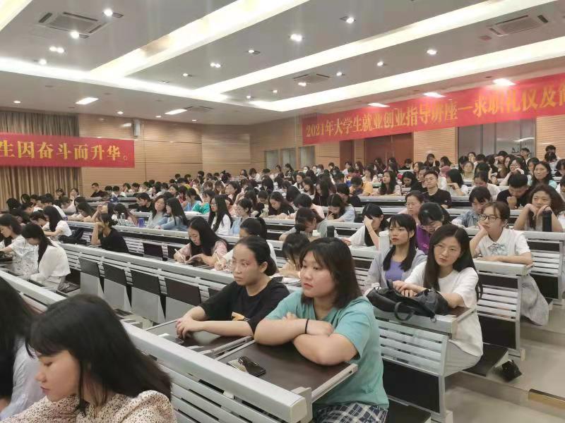 自党史学习教育开展以来,yl7703永利把党史学习教育同就业工作紧密结合,以稳定和扩大就业为重要抓手,为大学生办好实事。5月8日晚上8:00,yl7703永利邀请我校2018届毕业生、现就职于中共昌江黎族自治县委办公室的李第作,在学校学术报告厅为其学弟学妹们作《让公考之路不再迷茫》主题讲座,参加讲座的人员有学院党委副书记李足,辅导员及大四、大三、大二年级全体学生,讲座由学院党委副书记李足主持。