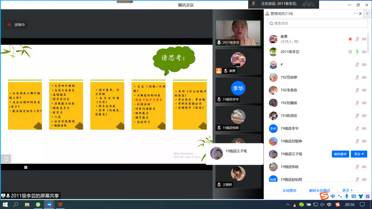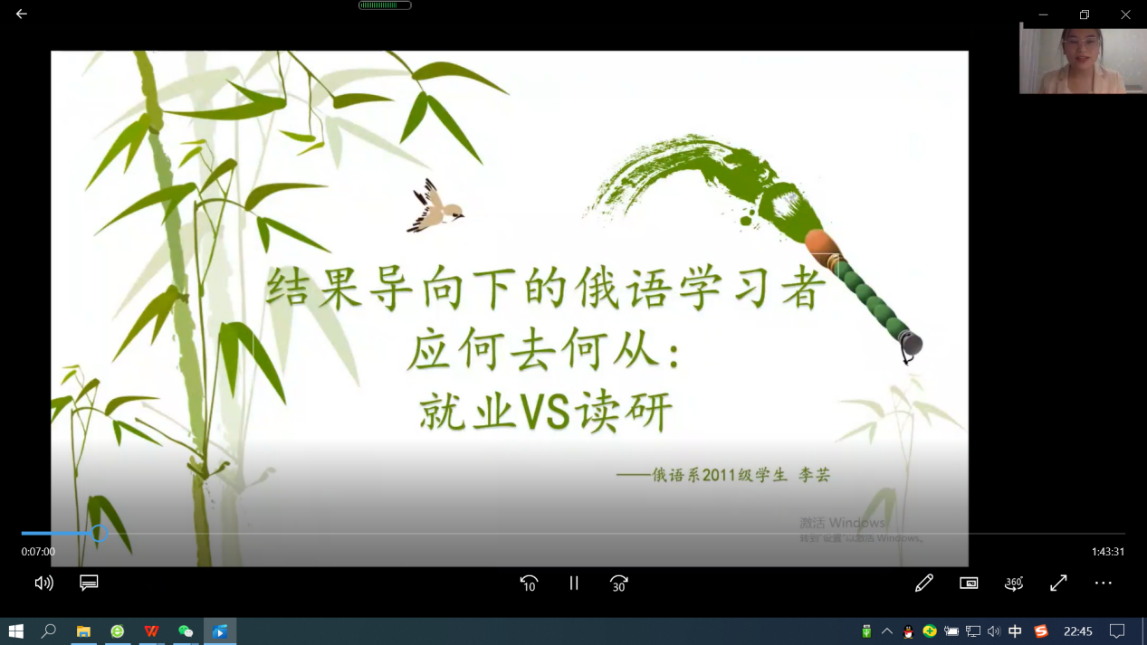 5月25日晚上8:00,yl7703永利俄语专业采取线上方式举办考研就业经验分享会,邀请15届优秀毕业生、北外俄语硕士李芸作题为《结果导向下的俄语学习者应何去何从:就业VS考研》的报告。李芸从如何度过大学生活、俄语毕业生的就业方向、要不要考研、俄语方向就业的学生要get的几个证书四个方面,以自己的亲身经历对如何做好学业规划、职业规划做了讲解。从学姐视角、翻译视角、人资视角分析了学习动机、学习方法、人生定位的重要性,启发俄语专业学生要以更严的要求、更高的站位思考学习和就业,为俄语专业以市场为导向的高质量人才培养增添了动力。