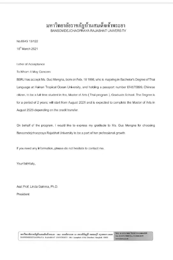 2021届毕业生,获得国家留学基金委全额资助赴泰留学1人;考取泰国高校硕士研究生(泰国孔敬大学、泰国诗纳卡琳大学及曼谷班颂德皇家师范大学)3 人,参加中国-东盟海上合作项目外派做汉语教师6人,经培训将赴泰国及其他东盟国家担任汉语教师传播中国文化。此外,大多数学生在北京、上海、江苏、广东等一二线城市的各名企及外企就业,从事物流、新媒体、翻译、助理、协调管理等综合性工作,部分学生将作为外派泰国及老挝工作的储备人才。而2022届毕业生考研成绩再创辉煌,